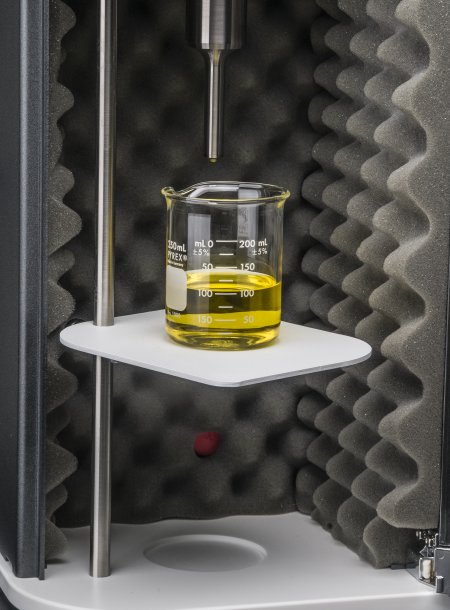 The adjustable sample table allows the operator to change the height of the table so that the Titanium Tip can be submerged into the sample at an optimal position.